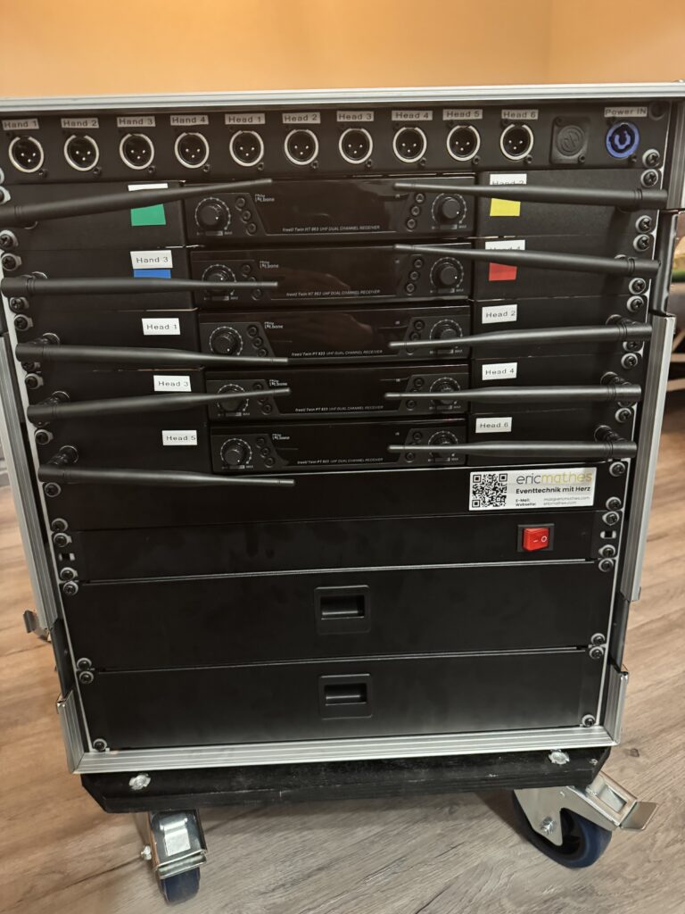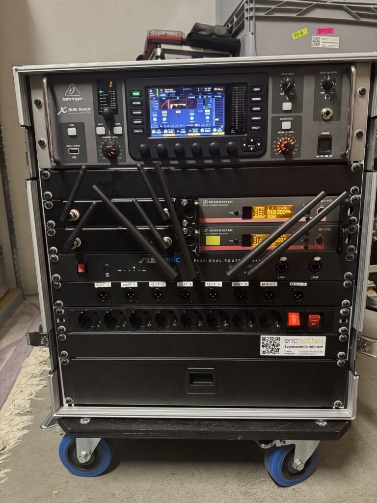 Gesteuert wurde alles über ein Behringer X32, bei dem jeder Kanal sorgfältig geplant war – am Ende waren alle Kanäle belegt. Digital von der Bühne abgeholt mit 2x S16 Stageboxen und einer Cat Leitung.