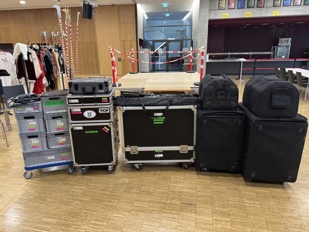 Unser Verein übernahm nicht nur die Tontechnik, sondern kümmerte sich auch um Licht, Videoaufnahmen und die Erstellung eines Behind-the-Scenes-Videos. So konnte das Projekt nicht nur live, sondern auch in der Gesamtfassung dokumentiert werden. Die Technik musste dabei mobil, einfach auf- und abzubauen und leicht transportierbar sein, alles Equipment war deshalb in Cases verpackt.